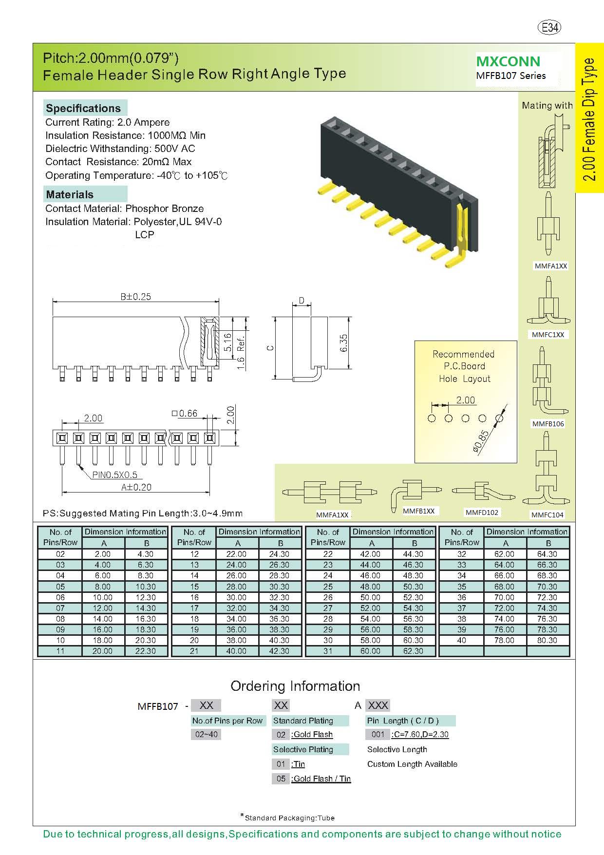 ·Pitch:2.0mm